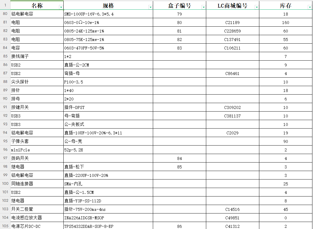 电子元器件库存列表